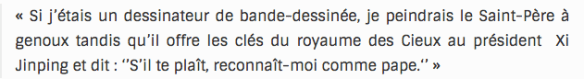 J Zen, cardinal émérite de HK contre le pape argentin qui a signé un accord secret avec Pekin la Rouge livrant les catholiques au régime communiste.