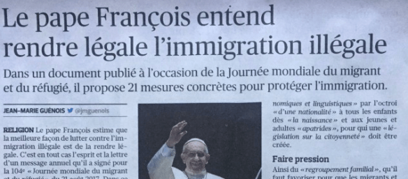 On l’a vu cirer les pompes de Soros, encourager les migrations internationales contre l’occident (l‘Europe est, selon lui, une vieille femme aigrie et stérile), prendre position pour l’écologie mondialiste, militer pour le métissage, se prosterner devant de fausses idoles, répondre favorablement à toutes les injonctions mondialistes, épouser l’idéologie marxiste, exposer un gilet de sauvetage crucifié à l’entrée du Vatican, délaisser les chrétiens persécutés dans le monde, douter de l’authenticité du st Suaire, reléguer la Vierge Marie à un rang subalterne, se faire très timide sur la condamnation des actes christianophobes, dresser des crèches pro-LGBT au coeur du Vatican, cocher toutes les cases de la soumission au Nouvel Ordre Mondial, adopter les thèses fumeuses des libre-penseurs….n’être pas de ce fait ce vicaire du Christ qui doit renverser les tables des changeurs !