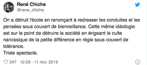 et sans parler de la féminisation de l’école qui tend à introvertir les garçons, de l’aberration de la mixité scolaire qui nie la différence entre les sexes, de la massification qui a drastiquement baissé le niveau…