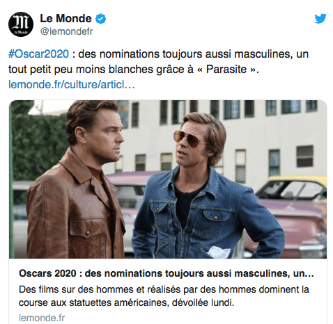 Il ne fait plus de doute que le cinéma moderne est un outil de propagande idéologique ! Les Oscars et les Césars, qui n’ont plus grand succès public, sont la quintessence de cette soumission au nouvel ordre mondial : la souffrance des minorités, la cause féministe, l’écologisme, le misérabilisme, le jeunisme…sont les thèmes de prédilection d’un art qui a perdu toute son indépendance, tout son génie et toute sa probité ! politique, showbiz et amoralité ont des affinités avérées.