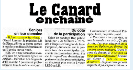 Car, les ainés sont invités à rester chez eux, les EPHAD sont bouclés, les campagnes désertifiées abandonnées par la Macronie, n’ont plus de bureaux de vote, elles ne sont même plus comptabilisées dans les partis politiques ….tous les signaux de contamination par le virus abstentionniste sont au rouge !