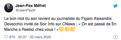 le bon mot du soir… Image Publié le 20 mars 2020 par la Solognote Partager : Cliquer pour partager sur X(ouvre dans une nouvelle fenêtre) X Cliquez pour partager sur Facebook(ouvre dans une nouvelle fenêtre) Facebook J’aime chargement… Similaire
