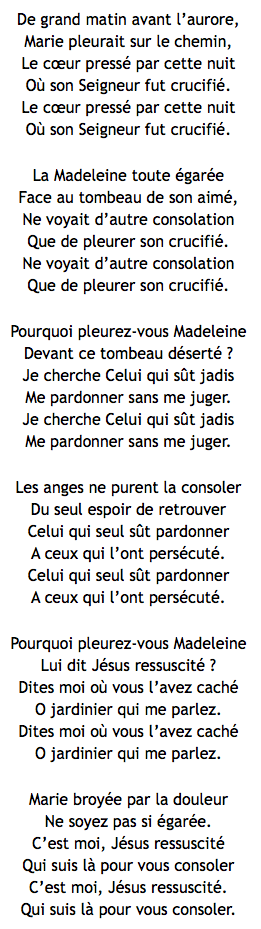 « les larmes de Madeleine » Publié le 27 avril 2020 par la Solognote Par un chœur de prêtres confinés : Partager : Partager sur X(ouvre dans une nouvelle fenêtre) X Partager sur Facebook(ouvre dans une nouvelle fenêtre) Facebook J’aime chargement… Similaire
