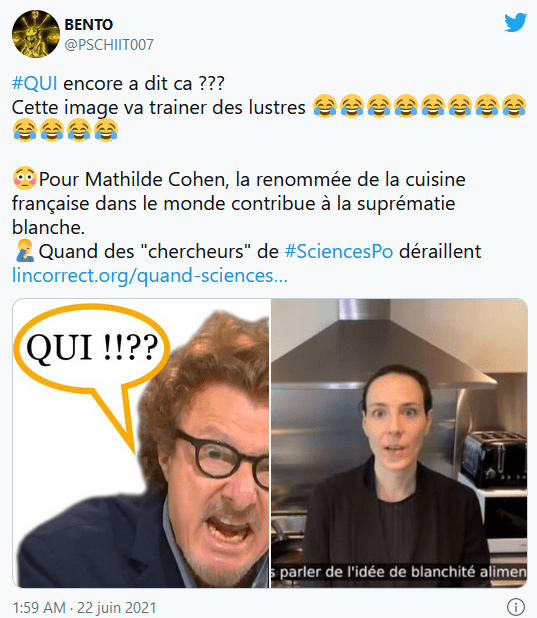 Les racialistes de #sciencespo continuent leurs horreurs et inventent «la blanchité alimentaire» La cuisine française serait raciste et contribuerait à la suprématie blanche… Mais qu’attend-on pour faire respecter nos traditions et couper toutes subventions à ces «chercheurs»?