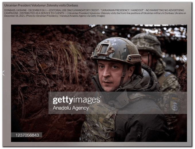 Ah le fameux président courage; sauf que…l’image date de décembre 2021 quand il bombardait le Donbass.