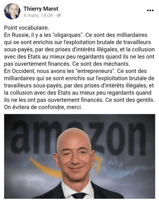 oligarques Est/Ouest Image Publié le 2 avril 2022 par la Solognote Partager : Cliquer pour partager sur X(ouvre dans une nouvelle fenêtre) X Cliquez pour partager sur Facebook(ouvre dans une nouvelle fenêtre) Facebook J’aime chargement… Similaire