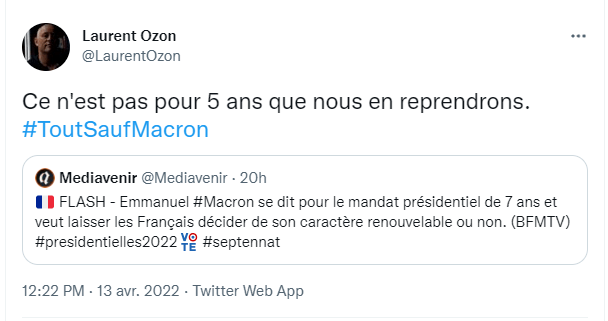 — Marine Le Pen (@MLP_officiel) April 13, 2022
