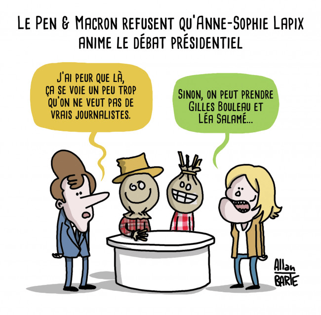 présidentielles : Sadoun-Lapix et Cohen éjectés du grand débat Publié le 15 avril 2022 par la Solognote Anne-Sophie #Lapix ne respecte pas son métier. Elle est une militante grimacière. #MarinePresidente pic.twitter.com/cfb5Fo7aAG— Eléonore BezⓂ️ (@EleonoreBez) April 15, 2022 Partager : Partager sur X(ouvre dans une nouvelle fenêtre) X Partager sur Facebook(ouvre dans une nouvelle fenêtre) Facebook J’aime chargement… Similaire