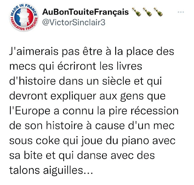 les mondialistes se gaussent des l’hyperinflation qui nous appauvrit Publié le 3 juin 2022 par la Solognote Pourquoi la caste des menteurs mondialisés se félicite de l’hyperinflation qui vous appauvrit Partager : Cliquer pour partager sur X(ouvre dans une nouvelle fenêtre) X Cliquez pour partager sur Facebook(ouvre dans une nouvelle fenêtre) Facebook J’aime chargement… Similaire