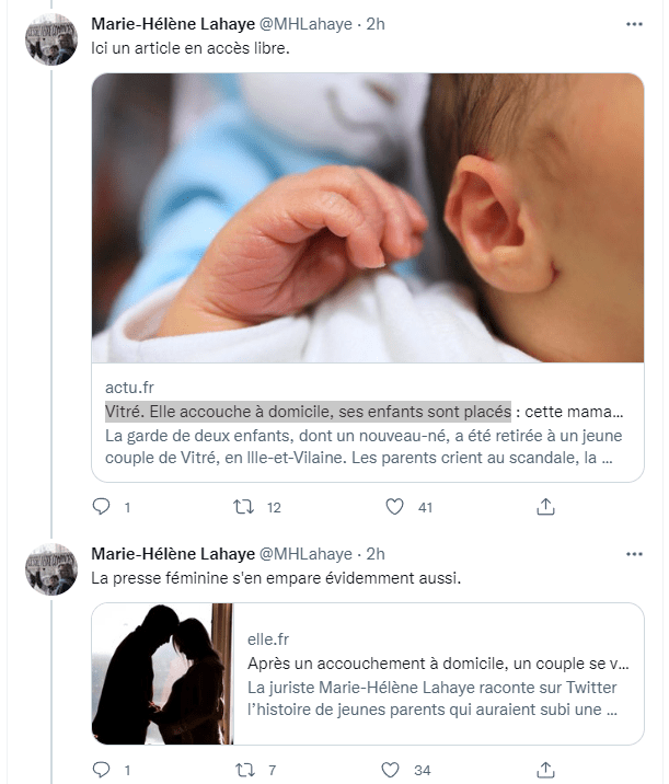 elle accouche à domicile, ses enfants lui sont retirés ! Publié le 14 juin 2022 par la Solognote https://www.lefigaro.fr/actualite-france/une-mere-s-indigne-du-placement-contraint-de-ses-filles-apres-son-accouchement-a-domicile-20220613 Partager : Cliquer pour partager sur X(ouvre dans une nouvelle fenêtre) X Cliquez pour partager sur Facebook(ouvre dans une nouvelle fenêtre) Facebook J’aime chargement… Similaire