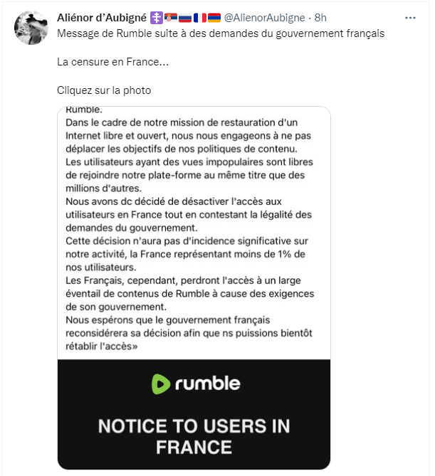 Dans le silence assourdissant des médias, la macronie a exigé que la plateforme censure les médias russes. Suite à ce harcèlement incessant des autorités françaises, le CEO Chris Pavlovsk a finalement décidé de bloquer la France.