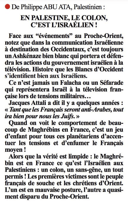 message d’un palestinien chrétien (paru dans Rivarol) Image Publié le 11 octobre 2023 par la Solognote Partager : Cliquer pour partager sur X(ouvre dans une nouvelle fenêtre) X Cliquez pour partager sur Facebook(ouvre dans une nouvelle fenêtre) Facebook J’aime chargement… Similaire
