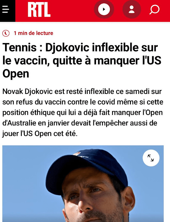 🎾💉#Djokovic : s’il doit se faire vacciner pour le tournoi de l’US Open cet été, il n’y participera pas !