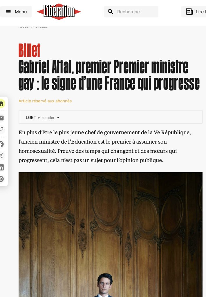 nomination d’Attal, le signe de la France qui progresse (selon Libé)